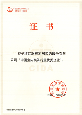 2018全國(guó)室内裝飾(shì)行業優秀企業 證書