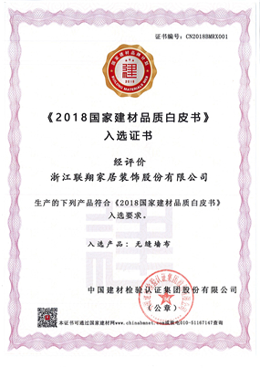 2018國(guó)家建材品質白皮書(shū)入選證書(shū)