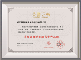 2020年度中國(guó)牆(qiáng)紙牆(qiáng)布行業十大影響力證書