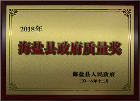 獲(huò)選嘉興市“四新”經濟示範(fàn)企業、榮獲(huò)海鹽縣政府質量獎;