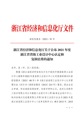 2021 聯翔被認定爲2021年度浙江省省級(jí)工業設計(jì)中心