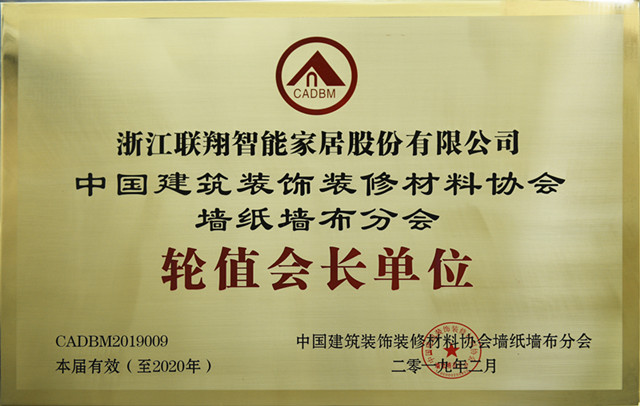 獲選中國建築裝飾裝修材料協會牆紙牆布分會輪值會長(zhǎng)單(dān)位;