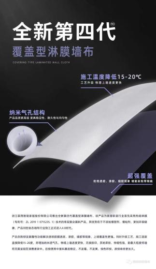 發(fā)明領繡全新第四代環保淋膜牆布,獲得覆蓋(gài)型淋膜專利技術(專利号:ZL 2019 1 0715235. 1) ;